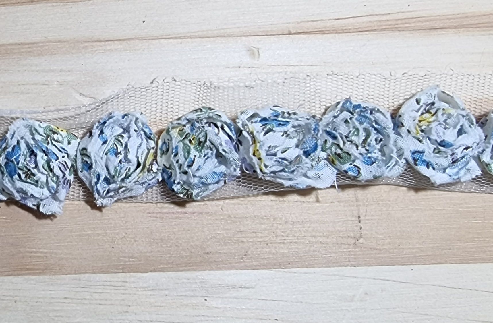 Cor branco/ azul com pequenos detalhes em amarelo.