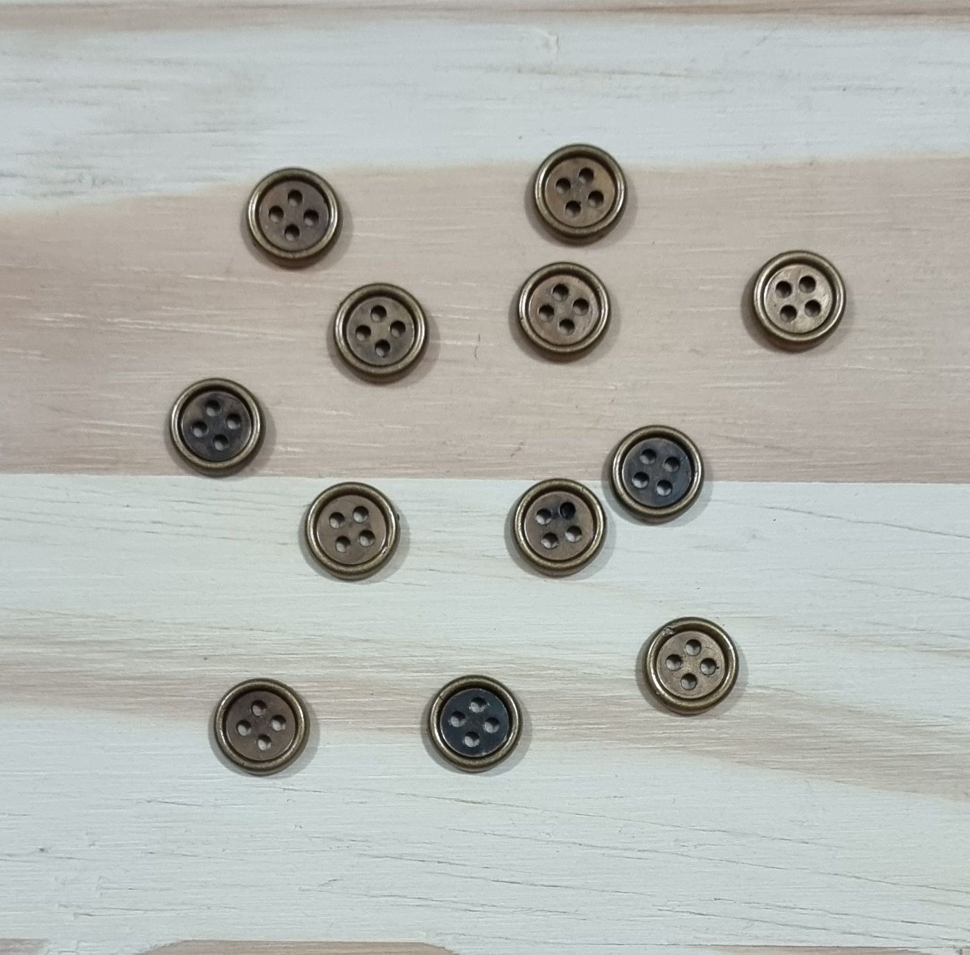 Botão imitando metal cor ouro velho. Medida: 1 cm 4 furos Valor referente à 12 botões