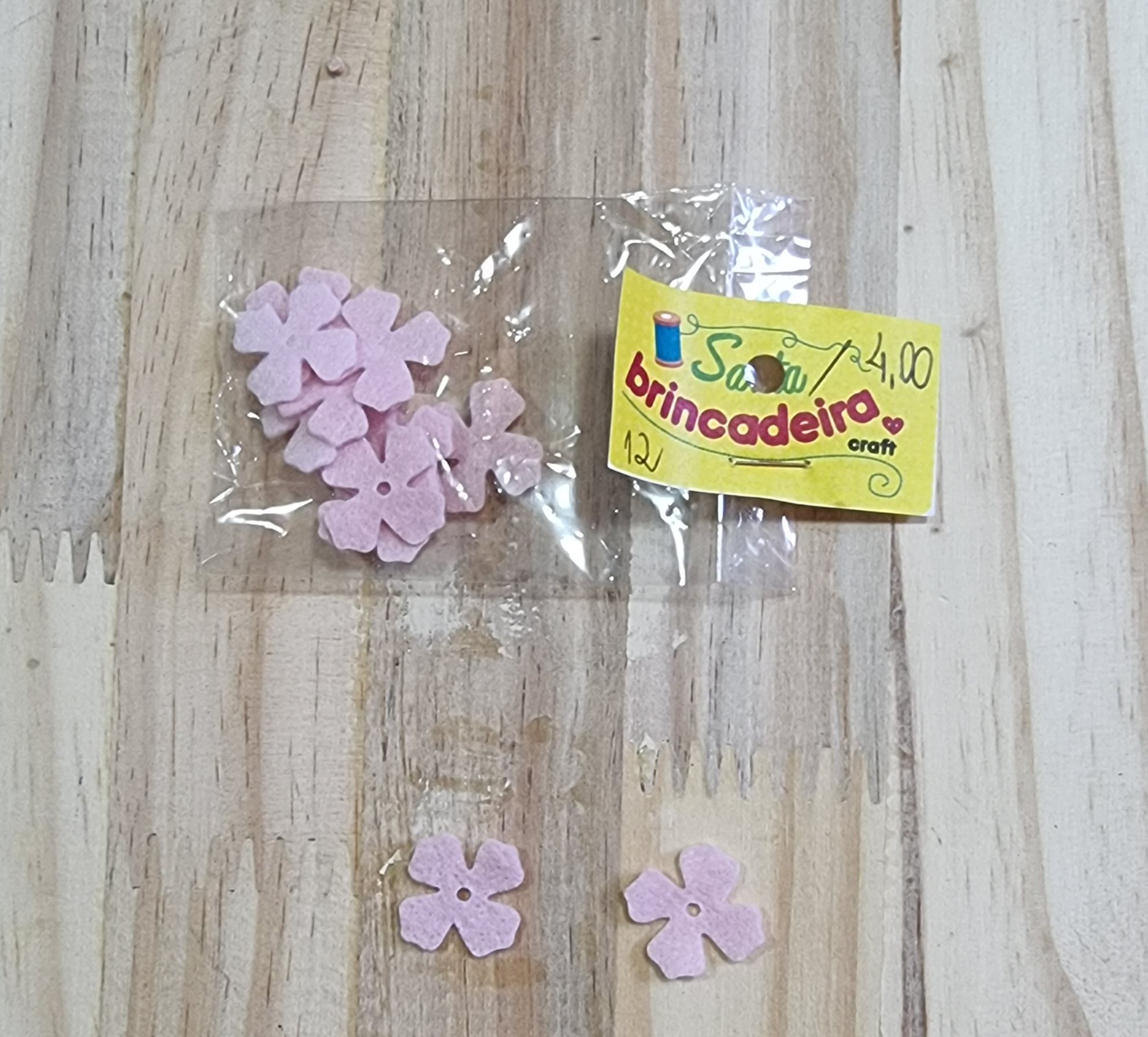 FLORZINHA DE FELTRO ROSA BEBÊ - 12 unidades