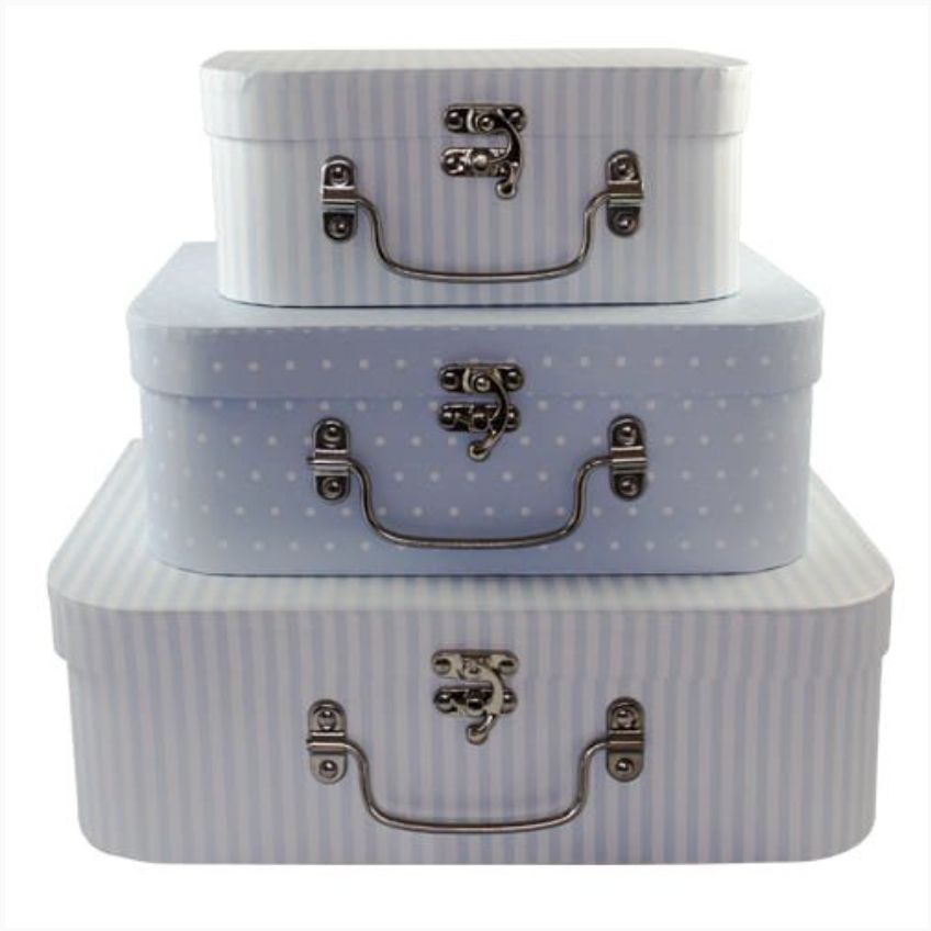 KIT MALETA 3 PEÇAS - POÁ COM LISTRA AZUL CLARO