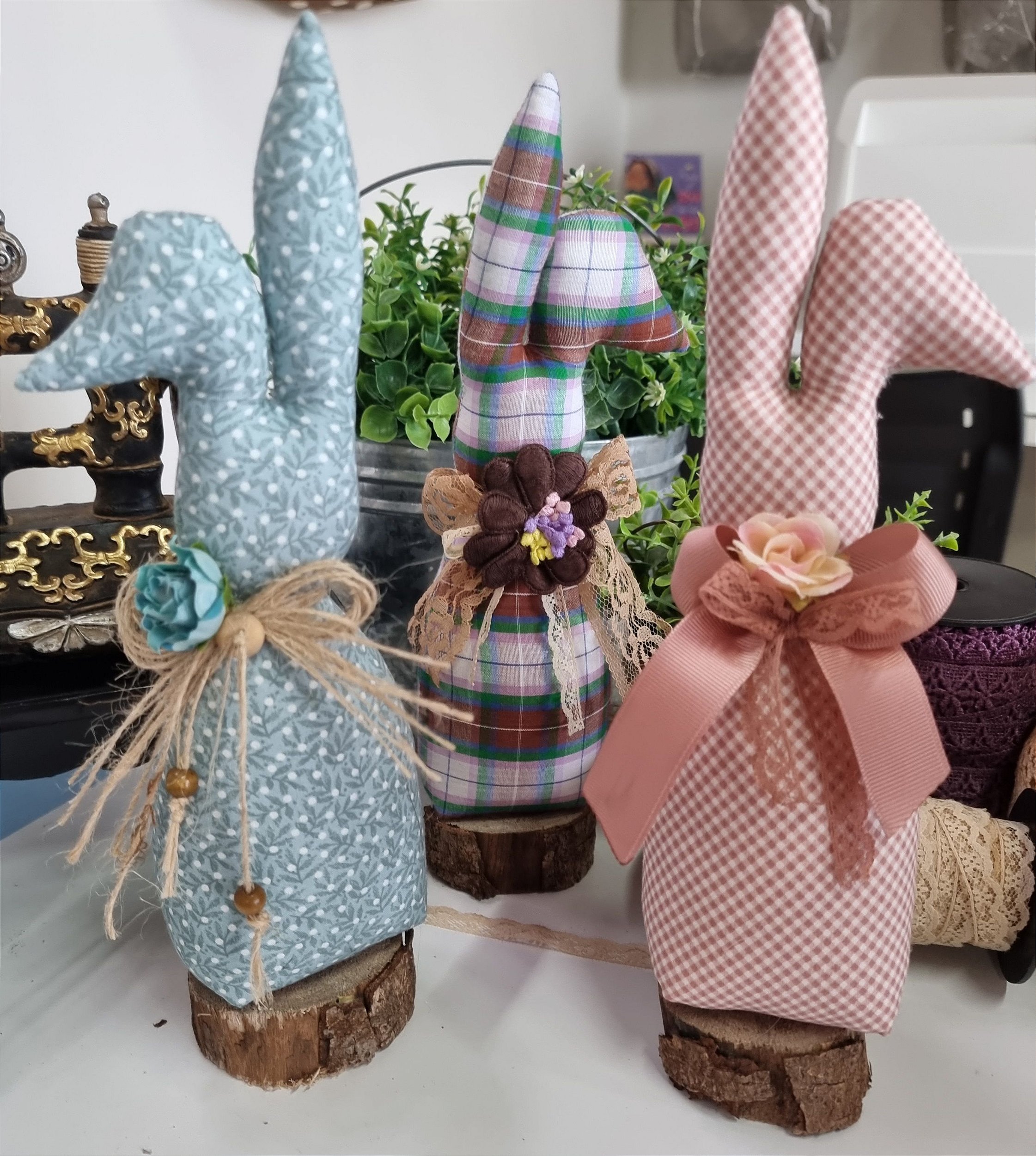 Kit material do coelhinho decorativo Tamanho do Coelho pronto 24cm. Kit contém: Tecido tricoline 15x30cm (duplo) 50cm de fita de gorgurão de 2cm 32cm de renda de 1cm 1 flor artificial 1 toquinho de madeira de + ou - 6cm de circunferência. Molde do Coelho grátis.