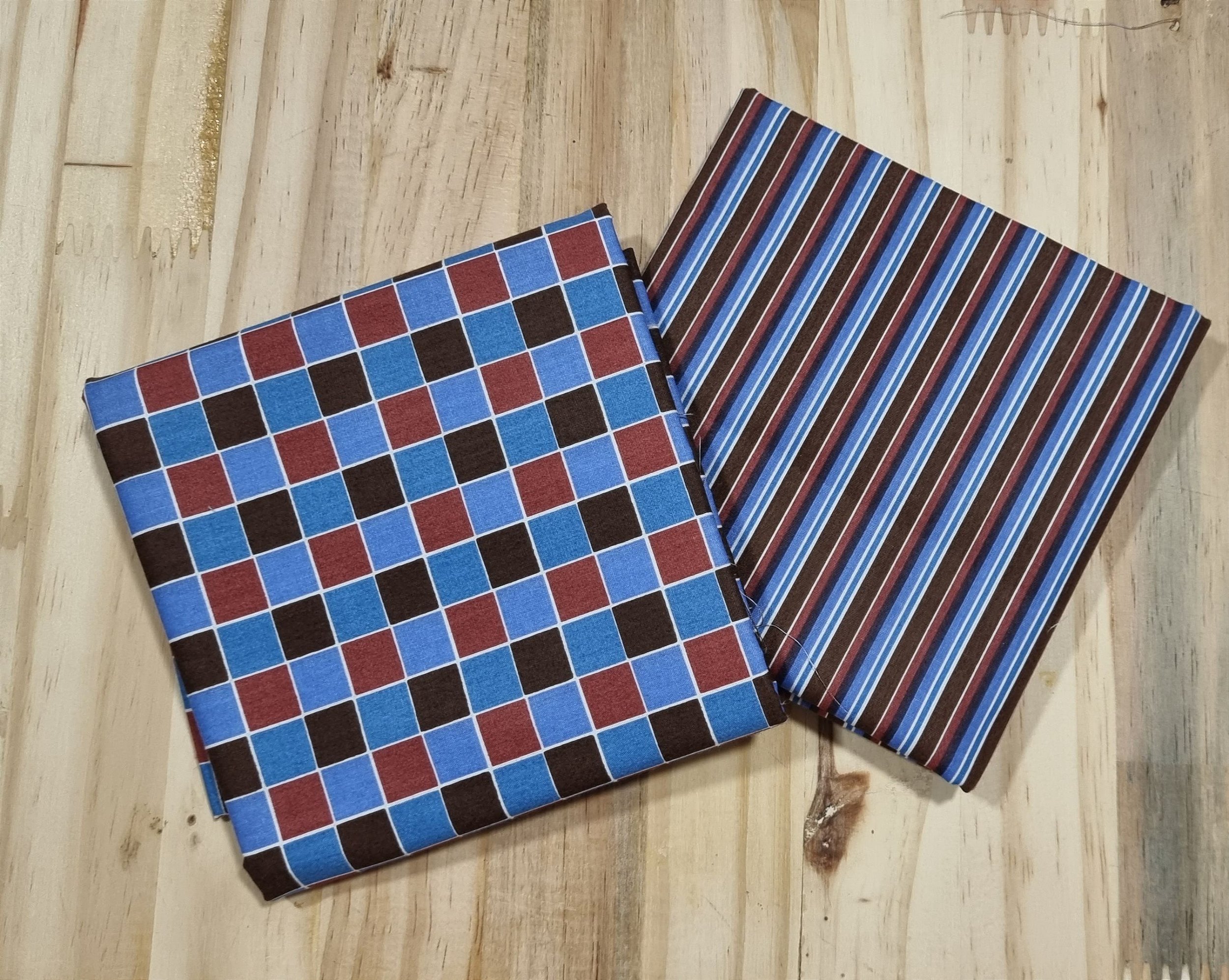 Kit de tecido tricoline 100% algodã: Xadrez medida 50 × 1,50cm / Listrado medida 50 X 1,50cm