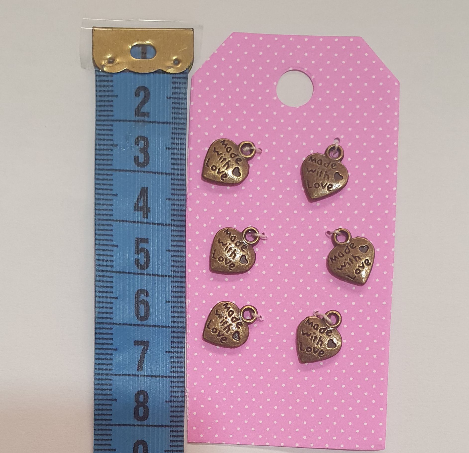 MINI PINGENTE DE METAL CORAÇÃO HAND MADE - 6 UNIDADES