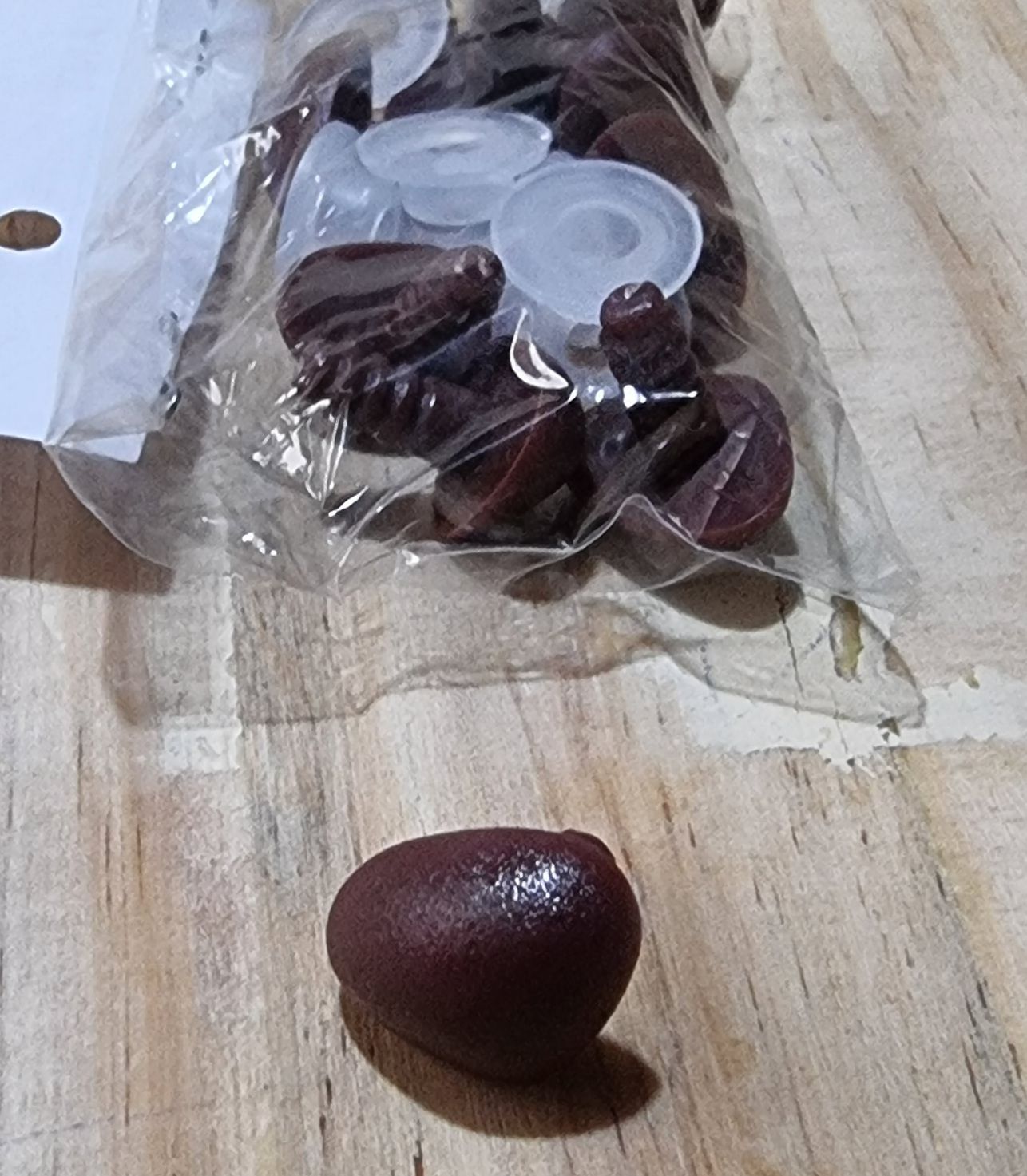 Nariz marron tamanho 2 pacote com 10 unidades de nariz e 10 travas. Ideal para usar em bichos de tecido, pelúcia e amigurumi.