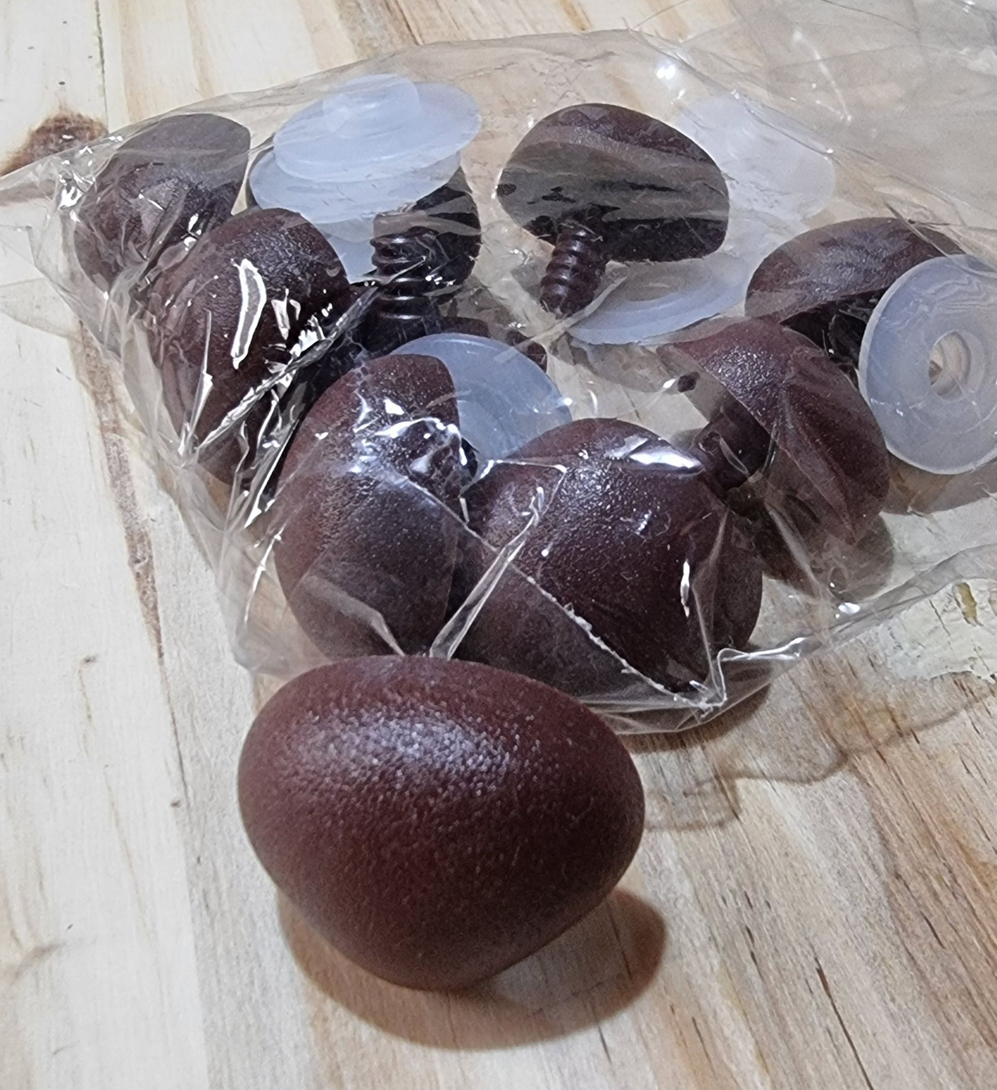 Nariz marron tamanho 5 pacote com 10 unidades de nariz e 10 travas. Ideal para usar em bichos de tecido, pelúcia e amigurumi.