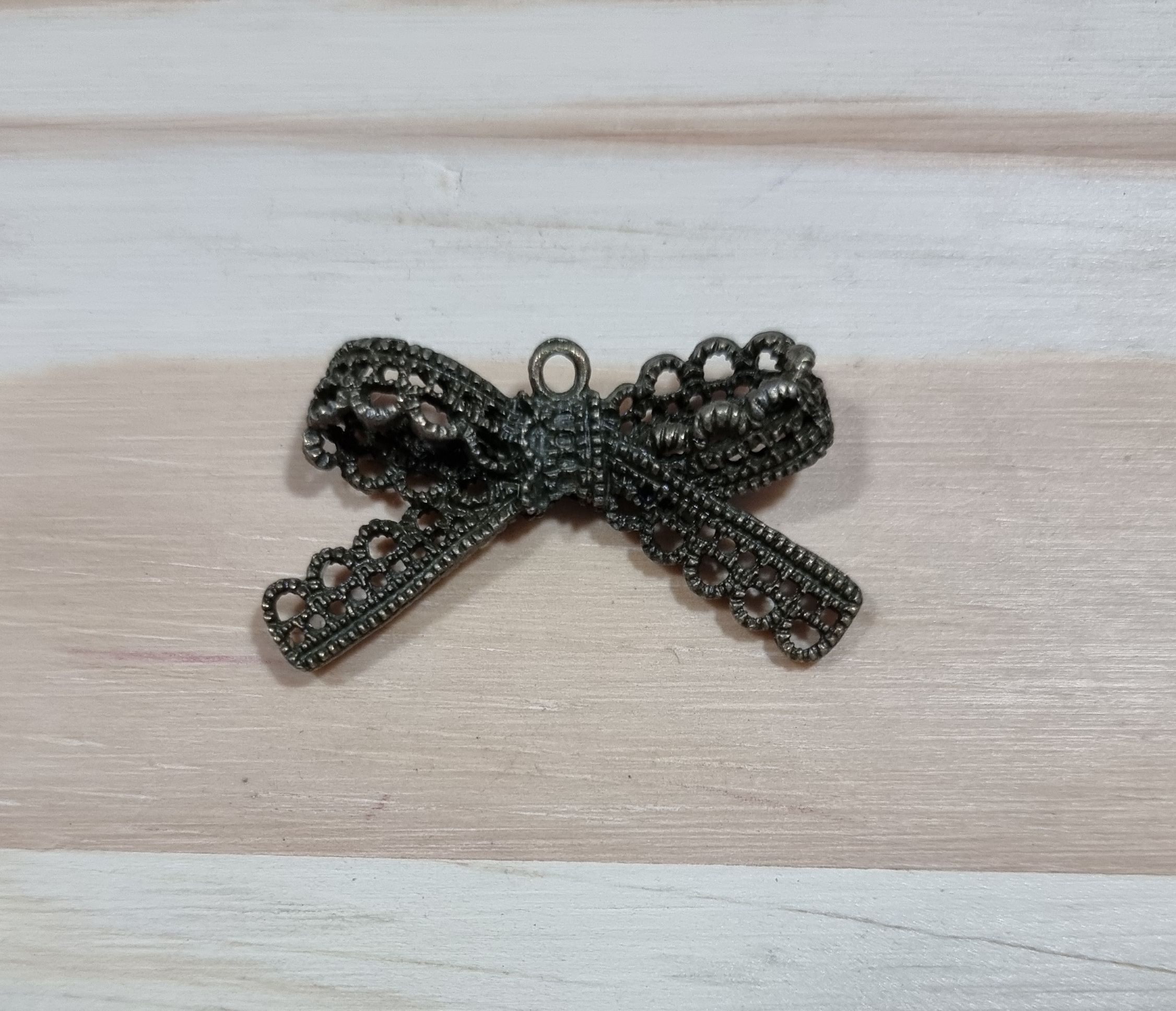 Pingente laço de metal cor ouro velho. Medida 2,5 x 4cm Valor referente à 1 unidade