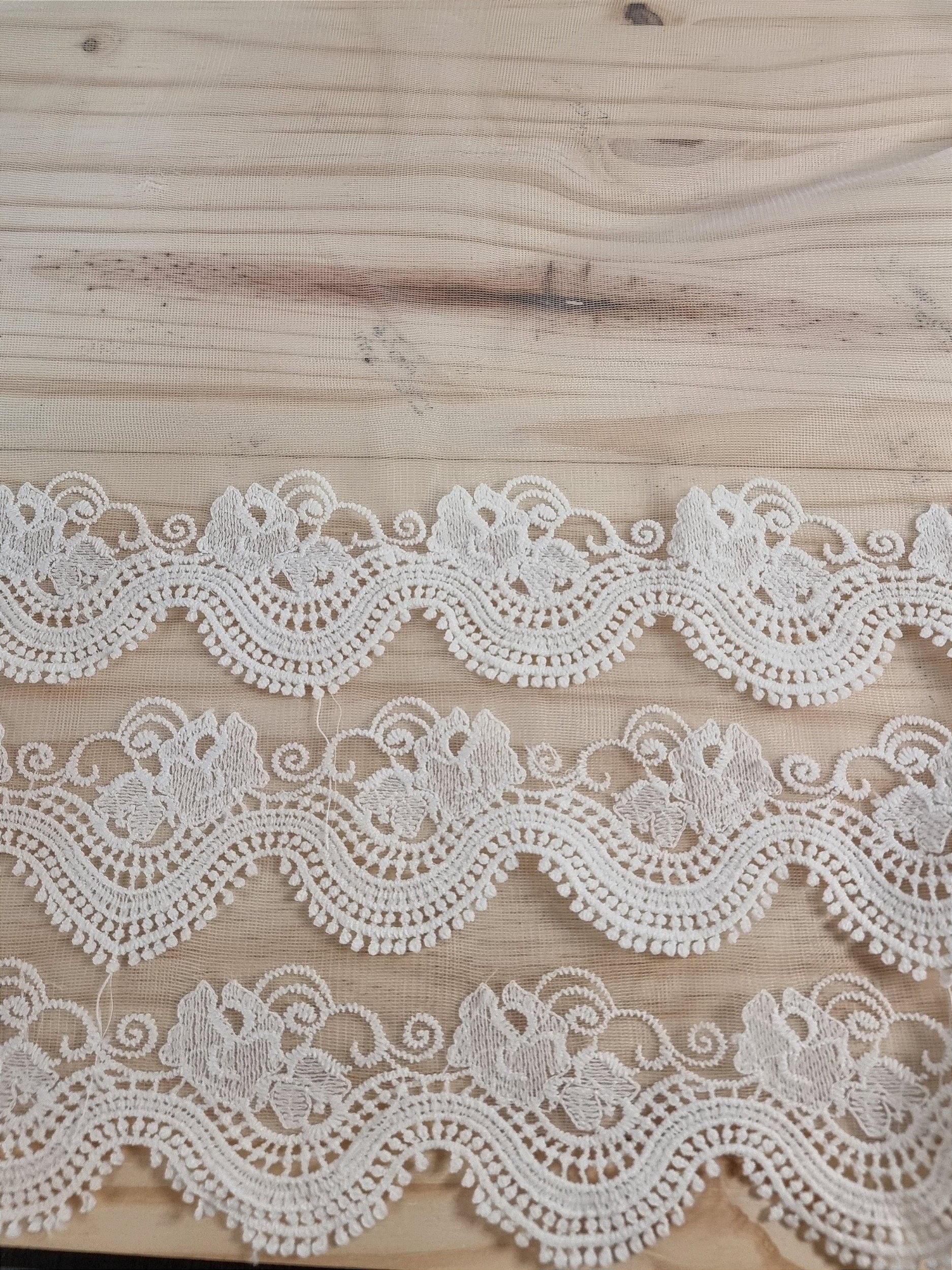 Renda de de tule bordada em 3 camadas cor off white