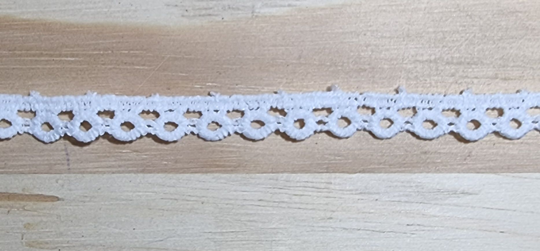 Renda branca mista (poliéster/algodão) Tamanho: 1 cm O valor é referente à 1 unidade = 1metro Para comprar maior metragem: Exemplo 2 unidades = 2 metros 3 unidades = 3 metros 4 unidades = 4 metros 5 unidades = 5 metros