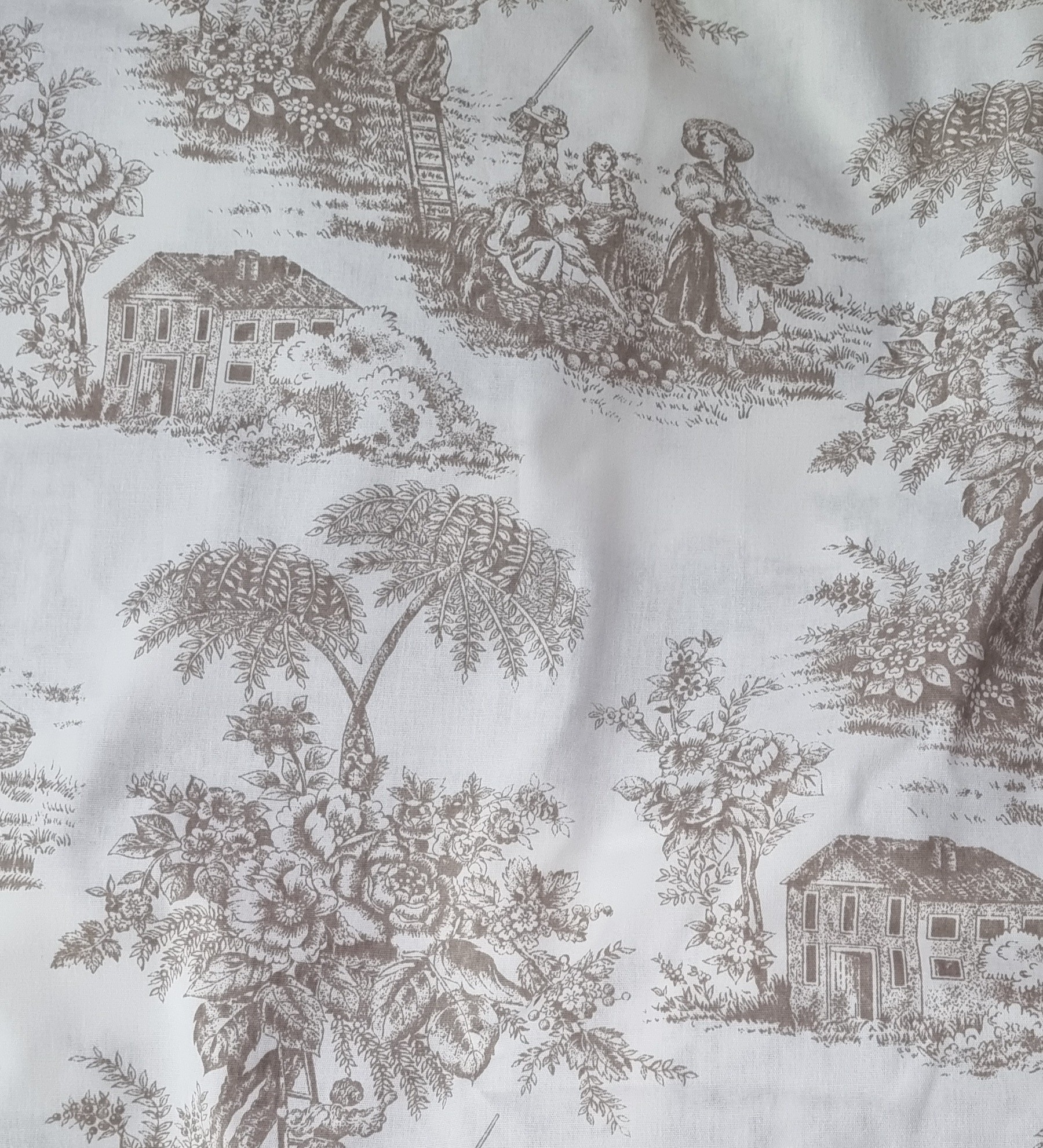 Tecido tricoline 100% algodão, fundo branco estampa Marron.